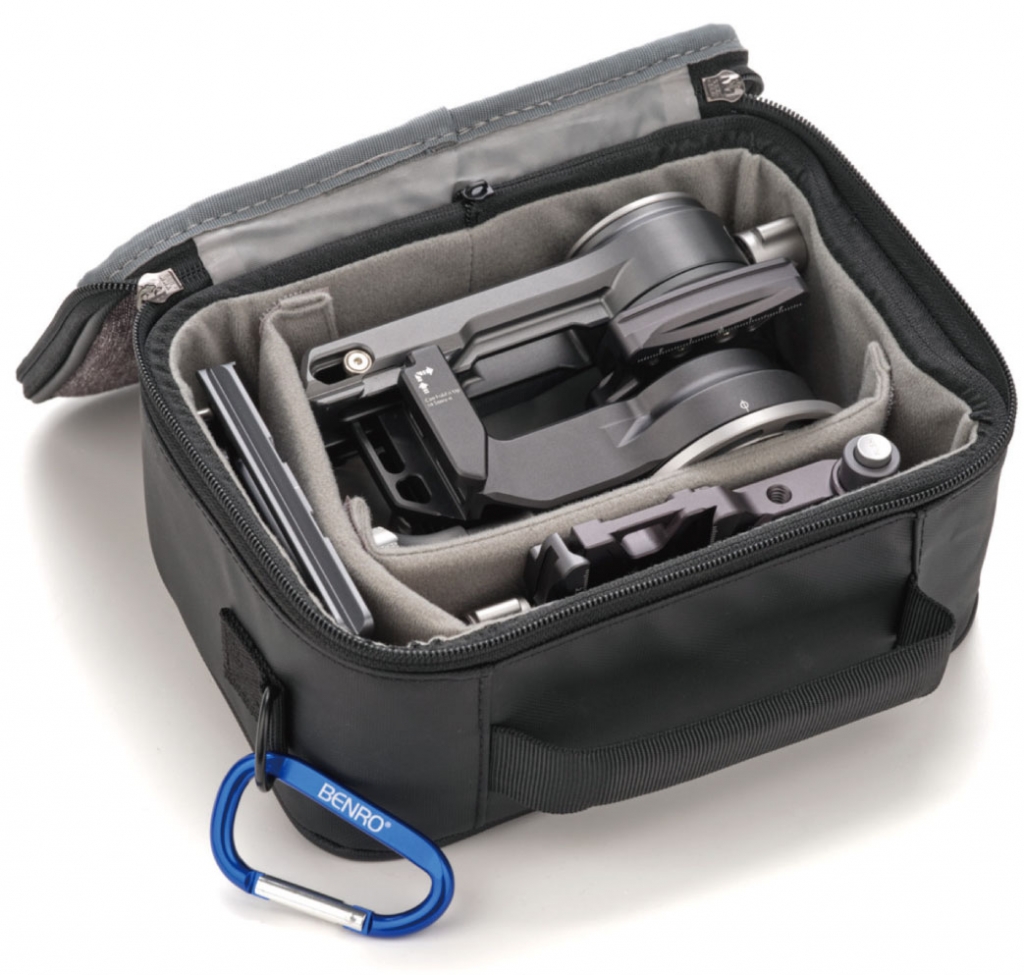 拍攝結束後,專用收納袋能完整包覆折疊後的雲台,保護器材安全。